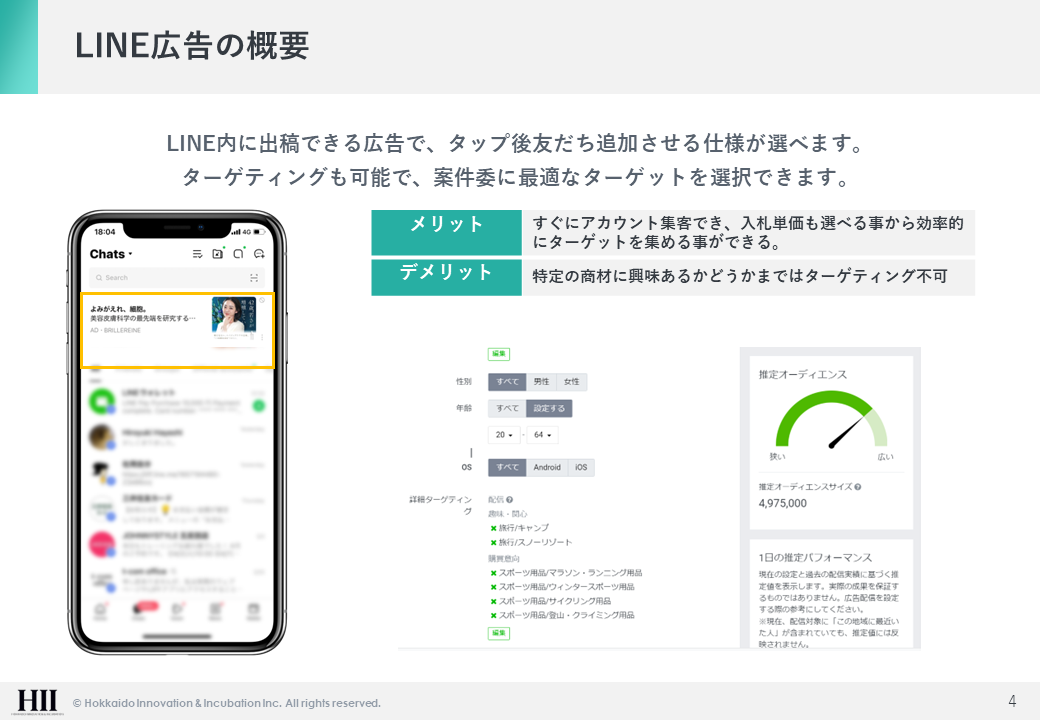 LINE上での広告は、タップするだけで瞬時に友だち登録が完了するような設計がなされており、これが集客活動の効率を高める要因となっています。
