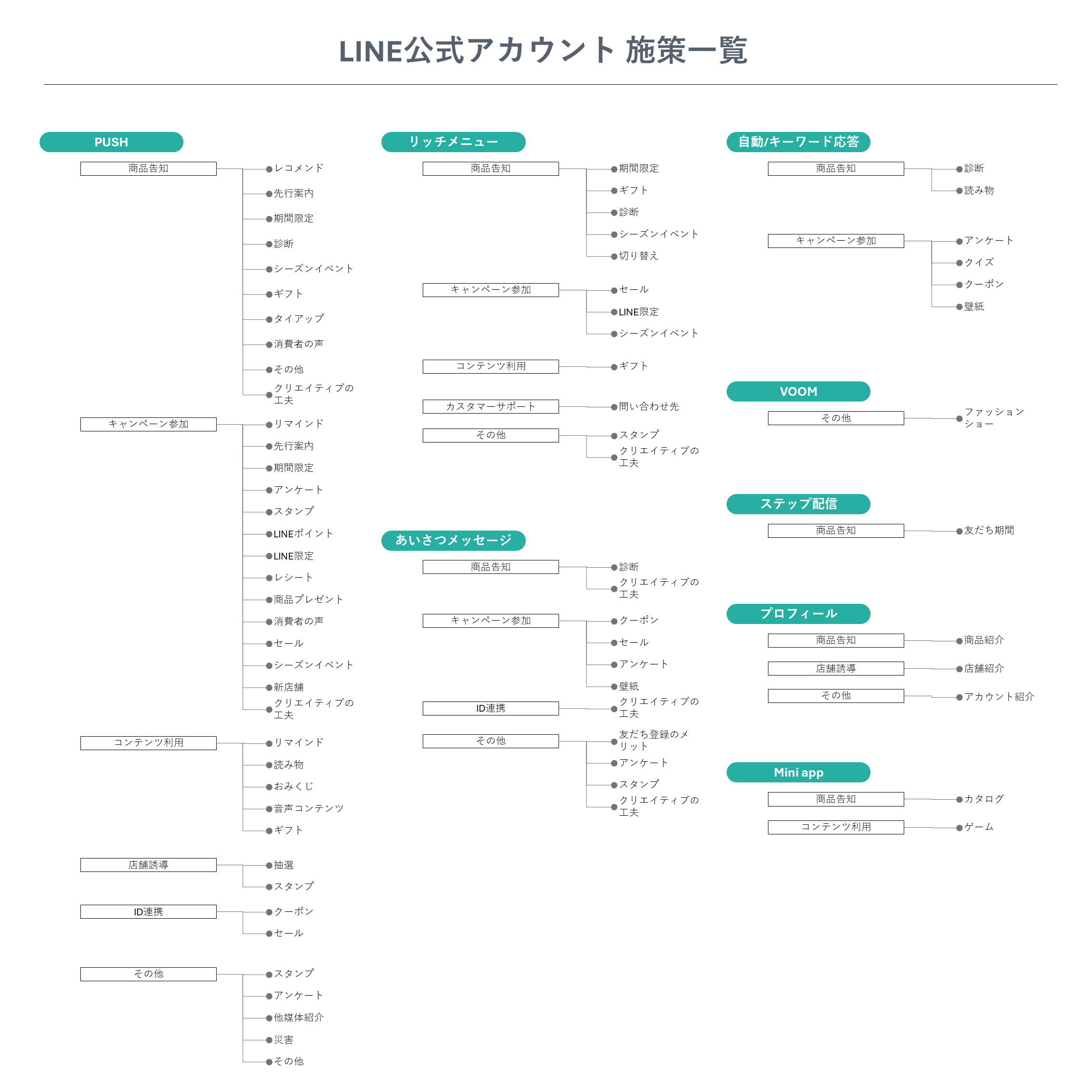 本記事では、弊社ツール L Boardに蓄積されたTipsから事例を200個程サンプリングし、74個の施策に整理しました。LINE運用のアイデアに迷った時にはぜひ参考にしてください。