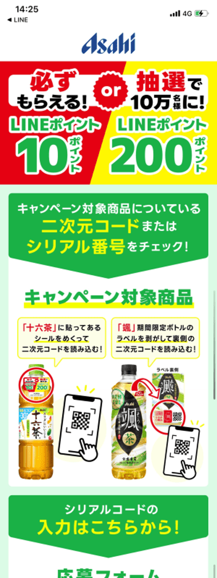 アサヒ飲料では、マストバイキャンペーンとして、LINEポイントが当たる抽選キャンペーンをLINEで行っています。