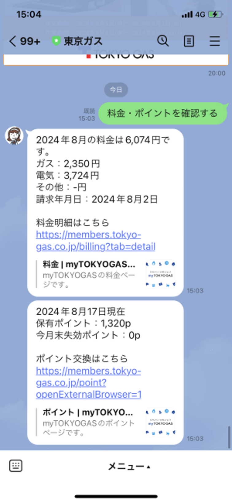 東京ガスでは、自分の利用料金やポイントが確認できるキーワード応答の機能を実装。