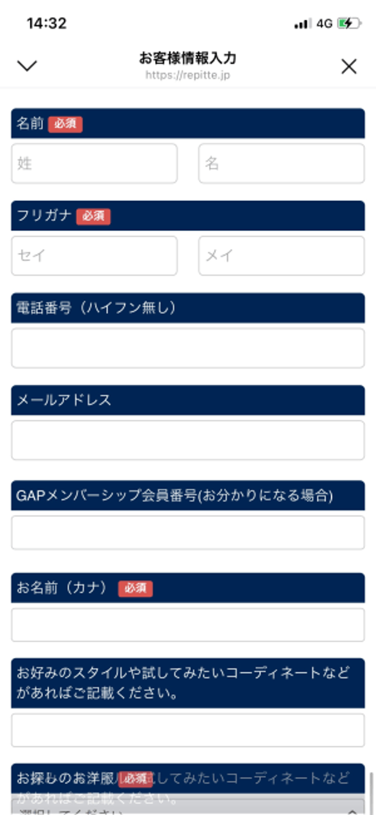 ファッション | ギャップ ジャパン | 情報入力(会員登録/アンケート) |