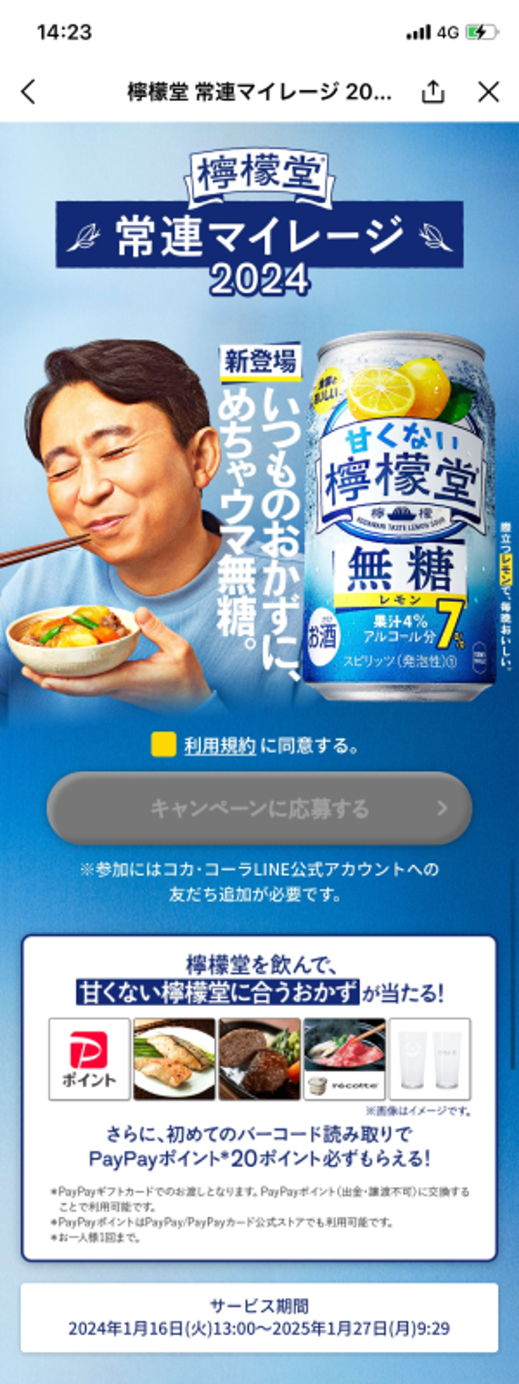 コカ・コーラでは、マイレージキャンペーンの紹介ページと応募ページをLINE上で実施しています。