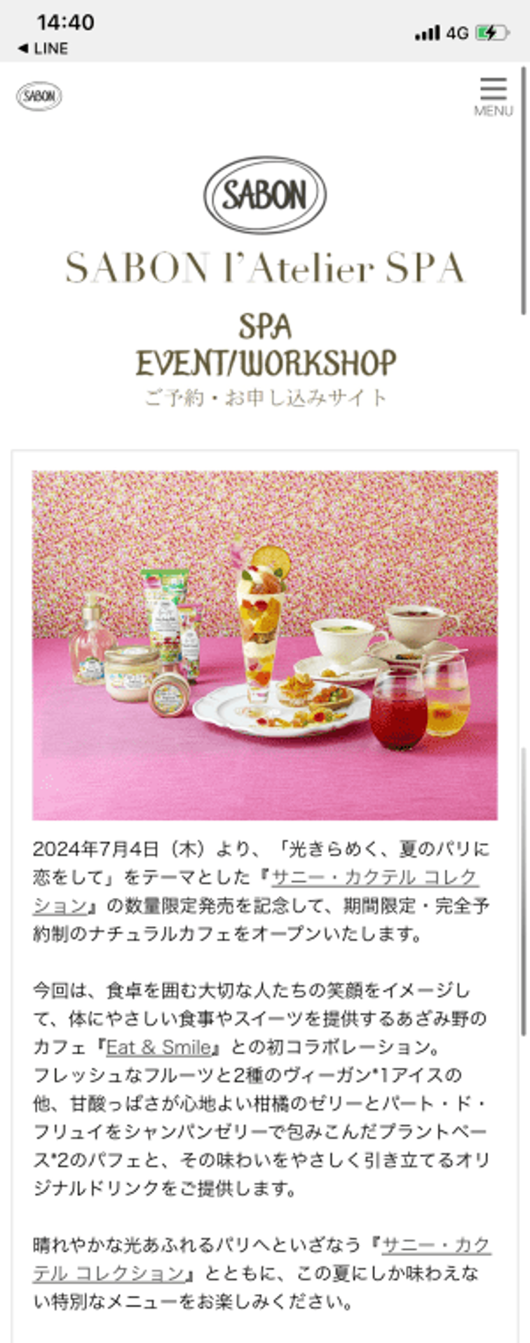 サボンでは、他ブランドとのコラボ企画イベントの予約をLINEで受付している。