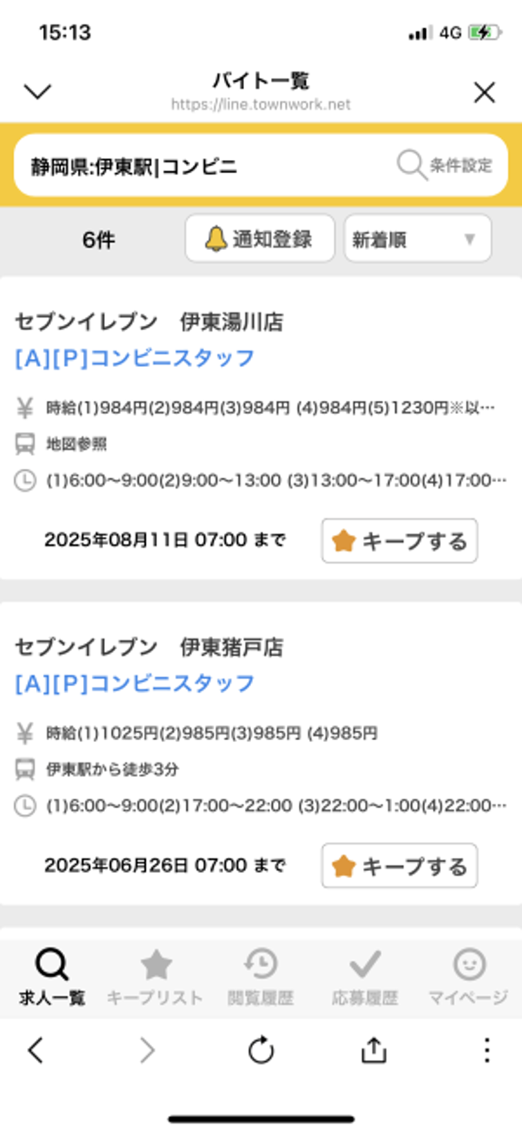 タウンワークでは、バイトの検索がLINE上で簡単にできるようになっている。