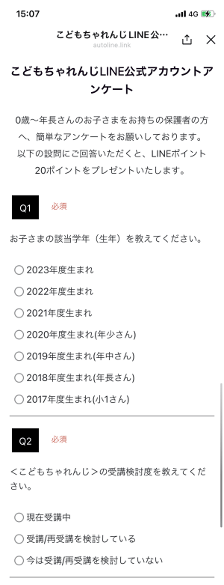こどもちゃれんじでは、アンケート機能を実装し、最適な情報を配信できるようにデータを取得している。