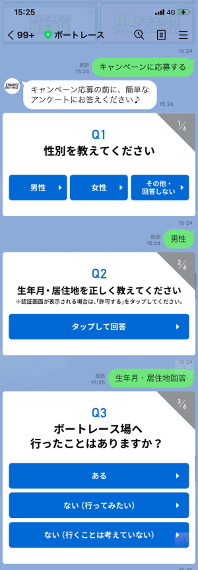 ボートレースでは、トーク画面のチャットボットでユーザーの情報を取得するアンケート機能を実装している。
