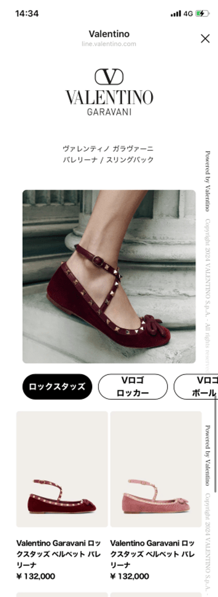 ヴァレンティノでは、商品の特設ページをカタログのようにLINEで実装しています。