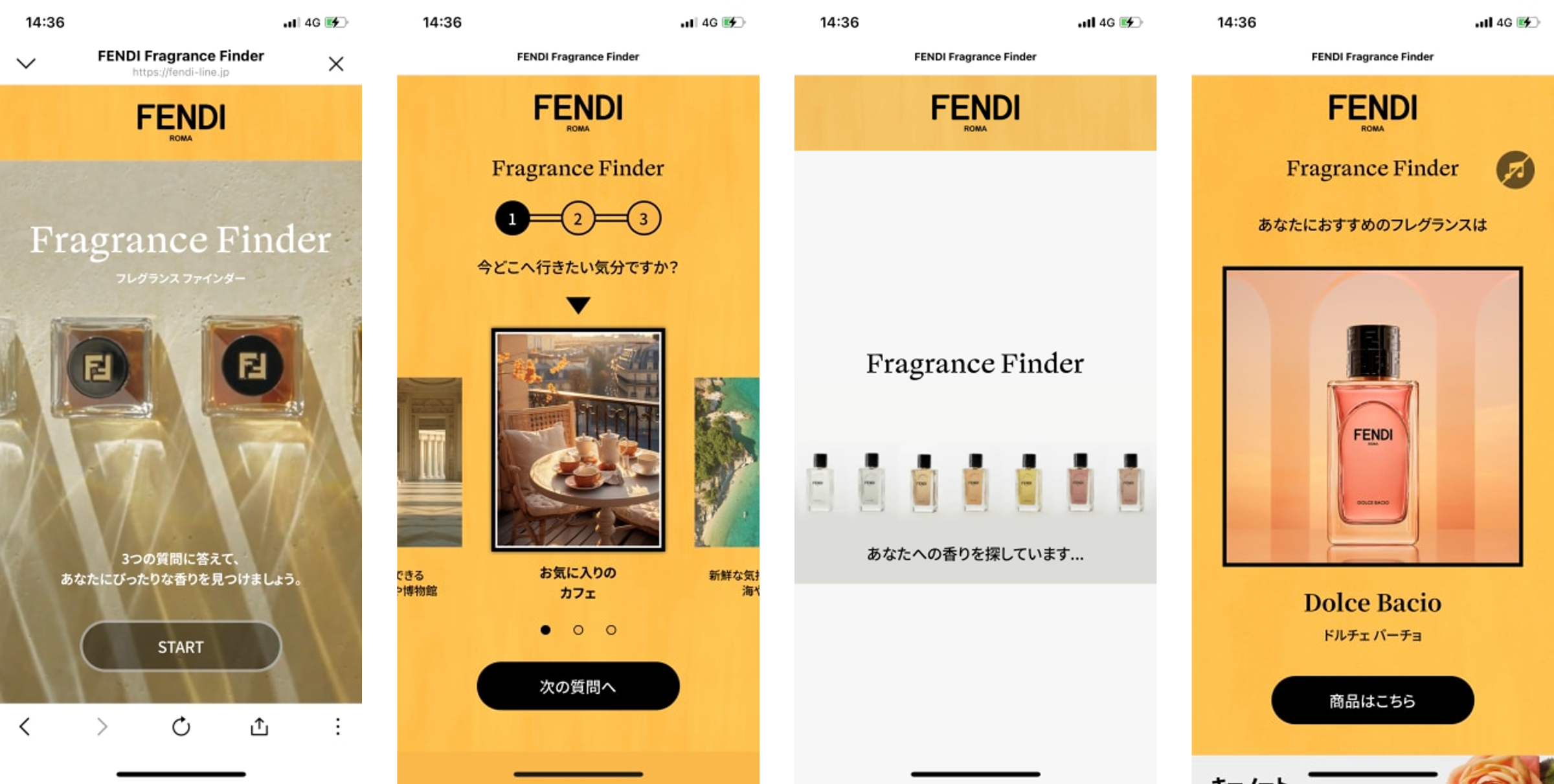 FENDIでは、フレグランスの診断コンテンツをミニアプリを用いて実装しています。