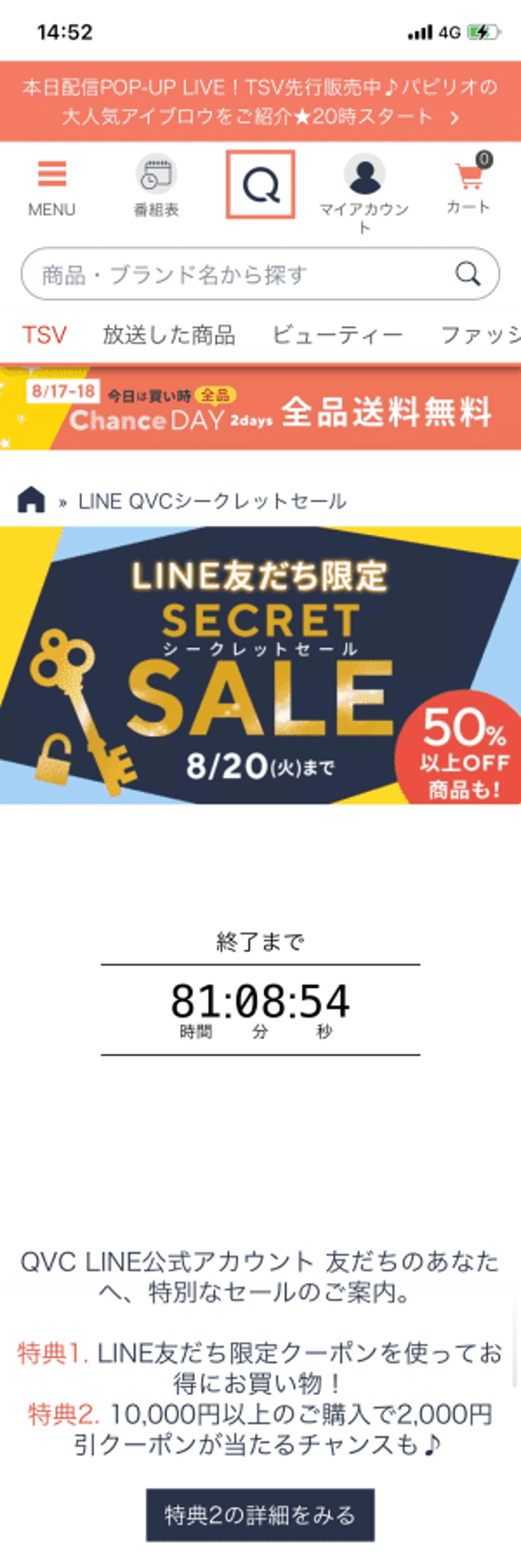QVCジャパンでは、LINE友だち限定のセールを実施。
